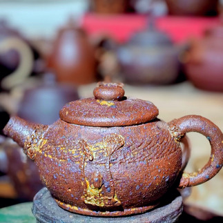 In the second, a family run factory centres on a recently renovated Dragon Combustion Kiln that was originally founded in the Qing Dynasty. Potters, all family friends or relatives, still do beautiful, sturdy, primitive utilitarian vessels whose Han or Jin dynasty precursors you can still admire in some museums all around the country. The kiln is regularly fired with coal and the process lasts for at least a whole week. The master of the house, Ding Jingmin, is a most benevolent and talented man. He has in recent years attempted a renovation of his personal style and endeavored, successfully, to make tea ware with local materials. His control of firing conditions is masterful and the ash sprinkles on the vessels give them a touch of supernatural. It is very true that the greatest form of harmony reflects the submission of man to nature, or rather the disappearance of man's will into nature. Great pottery art is borne of this combination, of this fusion of intention and aesthetical power. But it is always, as is the case of Longchang earthenware, the Way of Humbleness, the way of Ch'an, that unites life and art and the spirit. There is no separation, there is no secondary aim other than the creation of humanity, compassion, and beauty for everyday use.